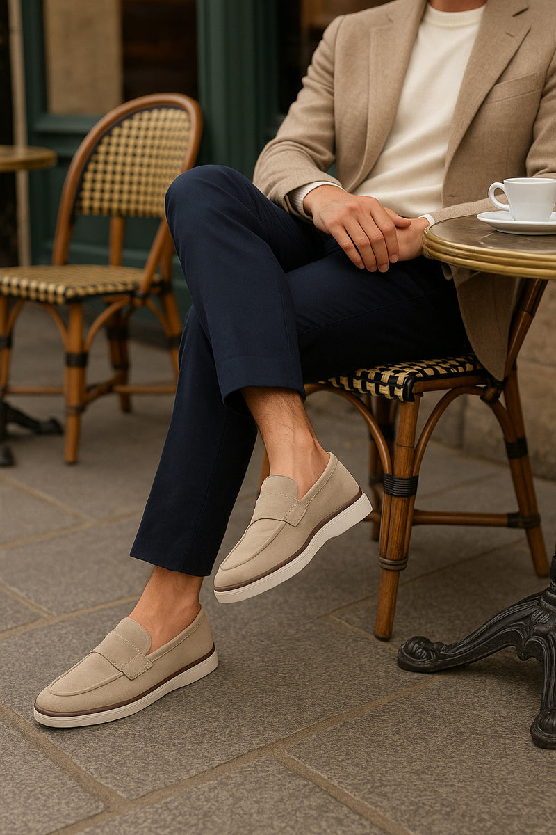 LaZevage Aurelio Beigeest la version lumineuse du modèle iconique de la marque. Conçue pour les hommes qui veulent rester élégants sans en faire trop, elle s’impose comme une évidence pour les journées chaudes, les tenues claires et les occasions spéciales.