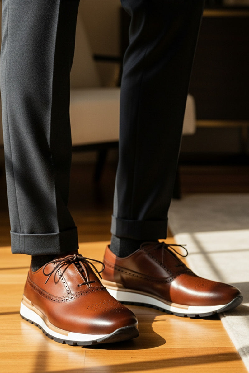 - Semelle sportive bicolore : allie style habillé et confort urbain