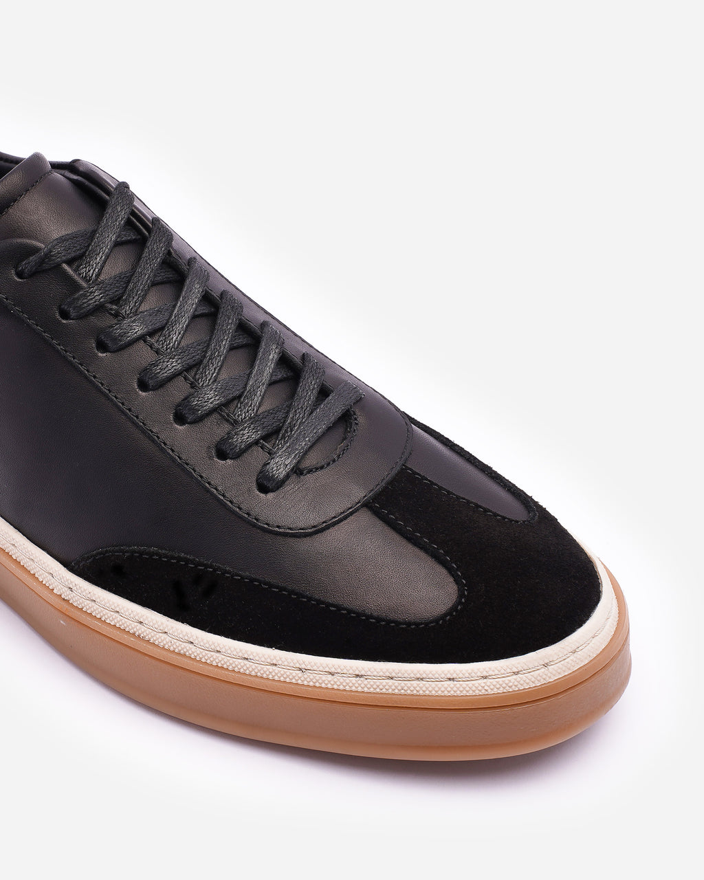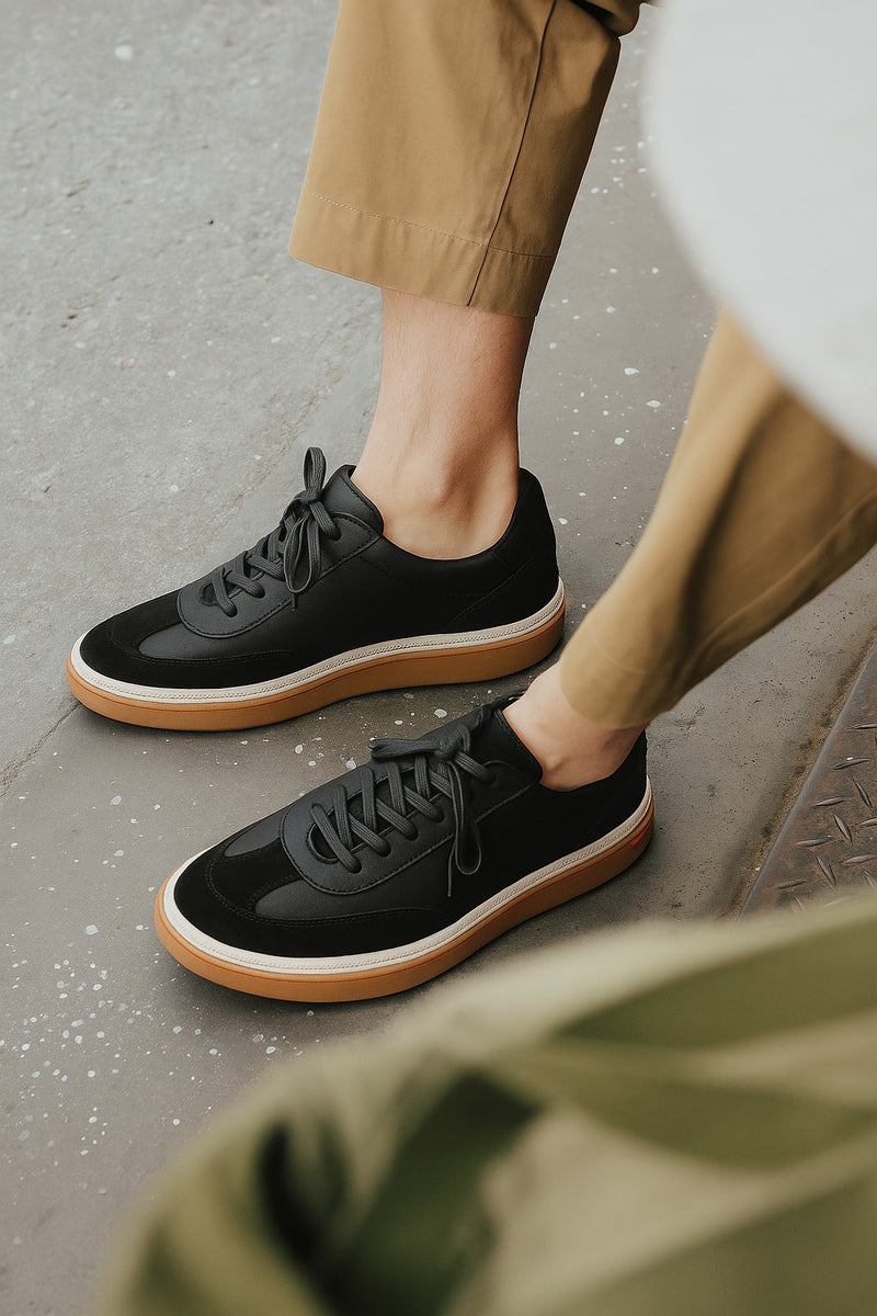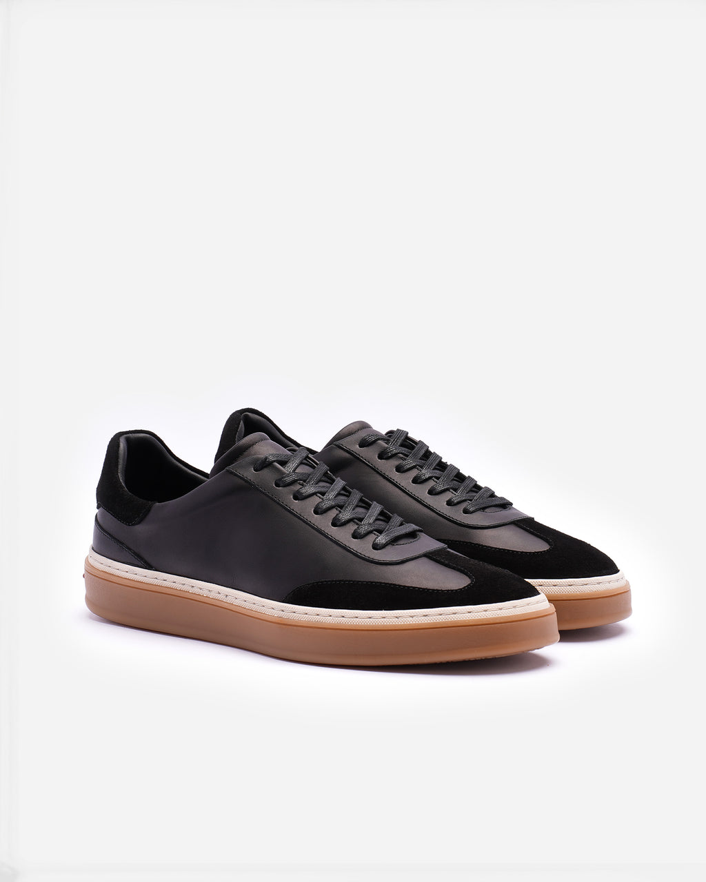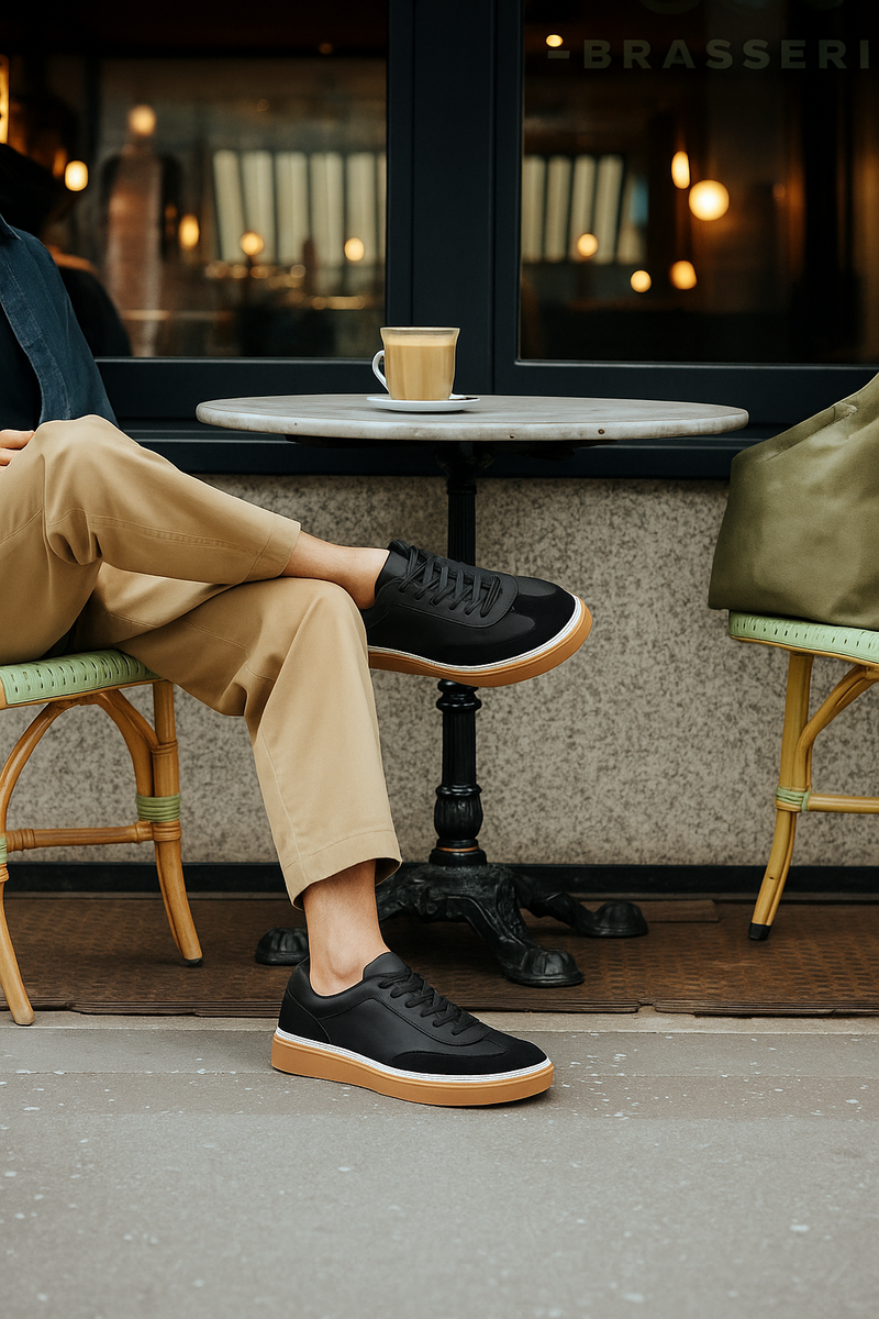 La Néo Noirincarne une élégance discrète à travers un design rétro-minimaliste. Sacombinaison de cuir lisse et suède noir ton sur tonapporte profondeur et texture, tandis que sasemelle gomme carameldonne une touche vintage parfaitement équilibrée. C’est la sneaker idéale pour ceux qui veulent allierstyle contemporainetpolyvalence urbaine.