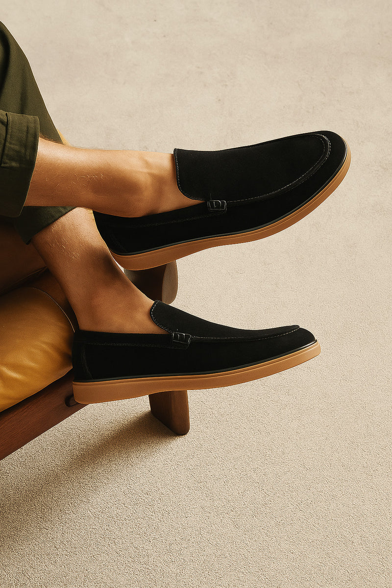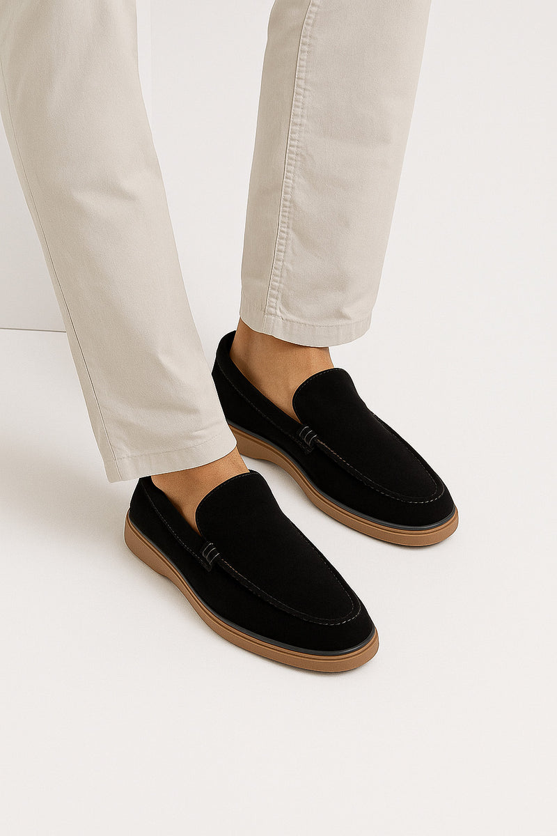 - Daim noir profond : texture douce, finition élégante et intemporelle