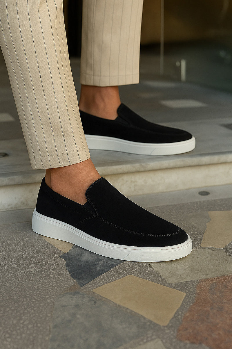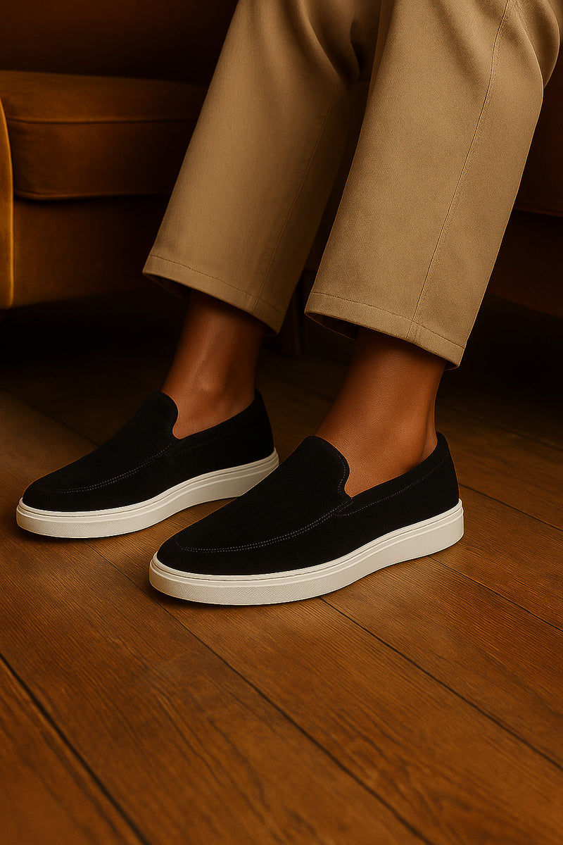 Ravel Noirest la version contemporaine du loafer classique. Avec satige en daim noir profondet sasemelle blanche épurée, il combine sobriété et distinction. Léger, souple et facile à porter, c’est le choix parfait pour une allure maîtrisée au quotidien.